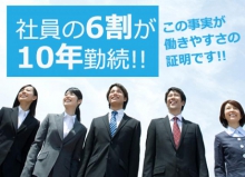 | 給与・報酬 | 想定年収:400万円~600万円 別途残業代は全額支給 残業は平均30h/月 交通費全額支給(上限5万円) 住宅手当 1万円(自己所有)2万5千円(賃貸) 【待遇・福利厚生】 ■各種社会保険完備(健康、厚生年金、労災、雇用) ■社員表彰制度(業務優良、永年勤続、改善提案) ■通信教育補助制度 ■慶弔金制度 ■退職金制度 ■各種同好会(ゴルフ、テニス、釣り 他) |